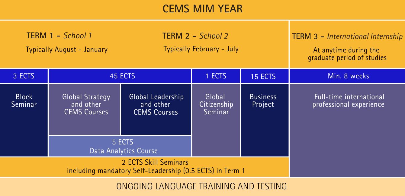 CEMS MIM Programme の卒業要件は以下のWebサイトに掲載されています。変更になることがありますので最新情報を確認してください。